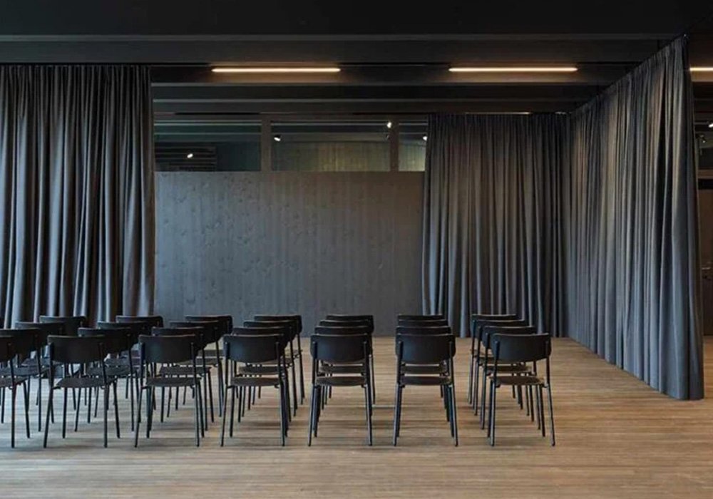 Akustik sahne perdesi, ses dalgalarını emerek sahne ve seyirci alanında net ve dengeli bir akustik ortam oluşturur.