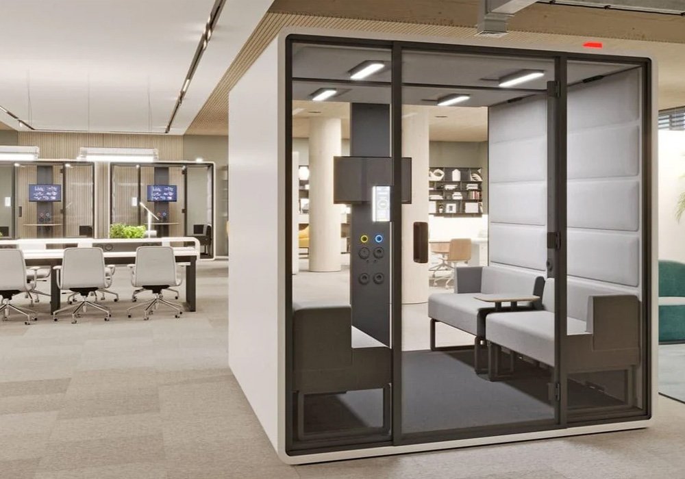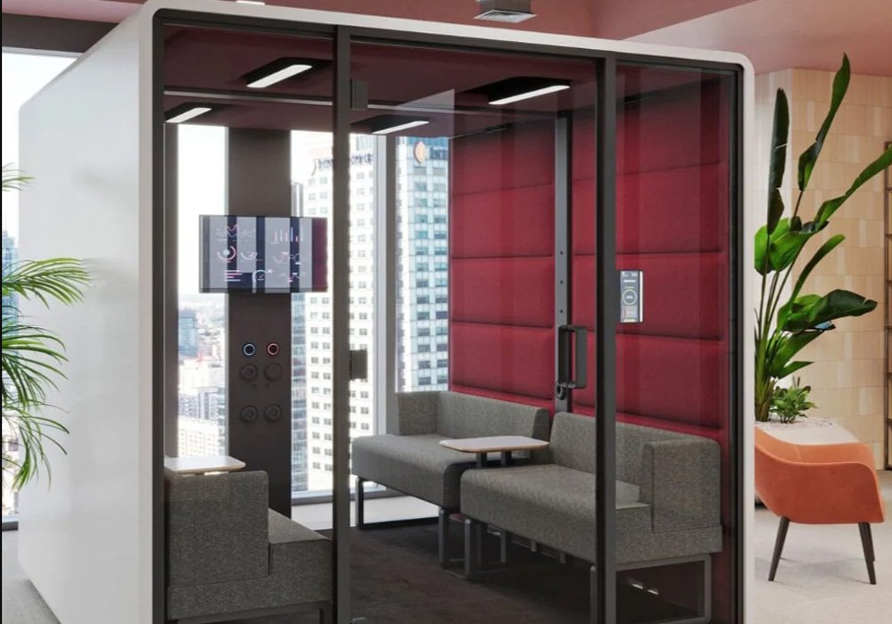 Akustik Toplantı Kabini, iç ve dış sesleri dengeli biçimde kontrol ederek izole ve konforlu bir toplantı ortamı oluşturur.