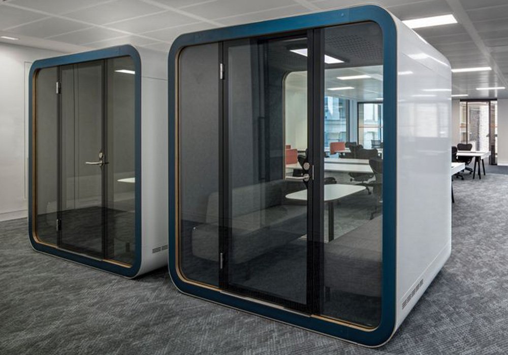 Akustik Toplantı Kabini, açık ofis ve ortak çalışma alanlarında küçük grup toplantıları için sessiz, izole ve konforlu bir ortam sunan profesyonel bir çözümdür. Yüksek ses yalıtımı ve iç akustik düzenlemesi sayesinde dış gürültüyü minimize eder, toplantı gizliliğini ve konuşma netliğini artırır. Modern ve fonksiyonel tasarımıyla ofis mimarisine uyum sağlar; verimli ve odaklı toplantılar yapılmasına olanak tanır.