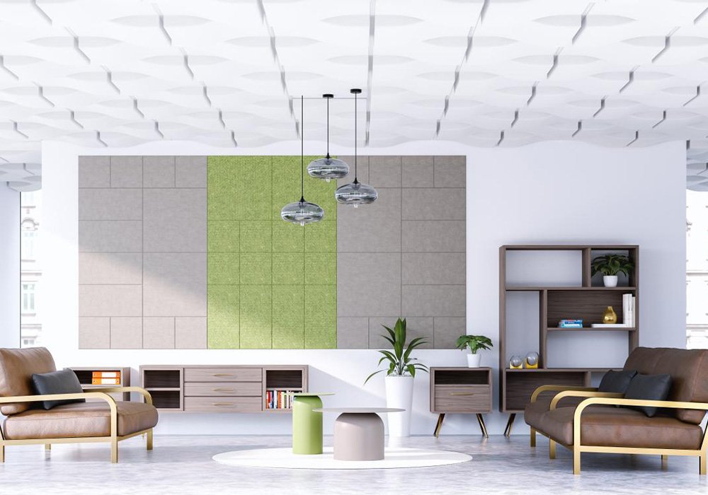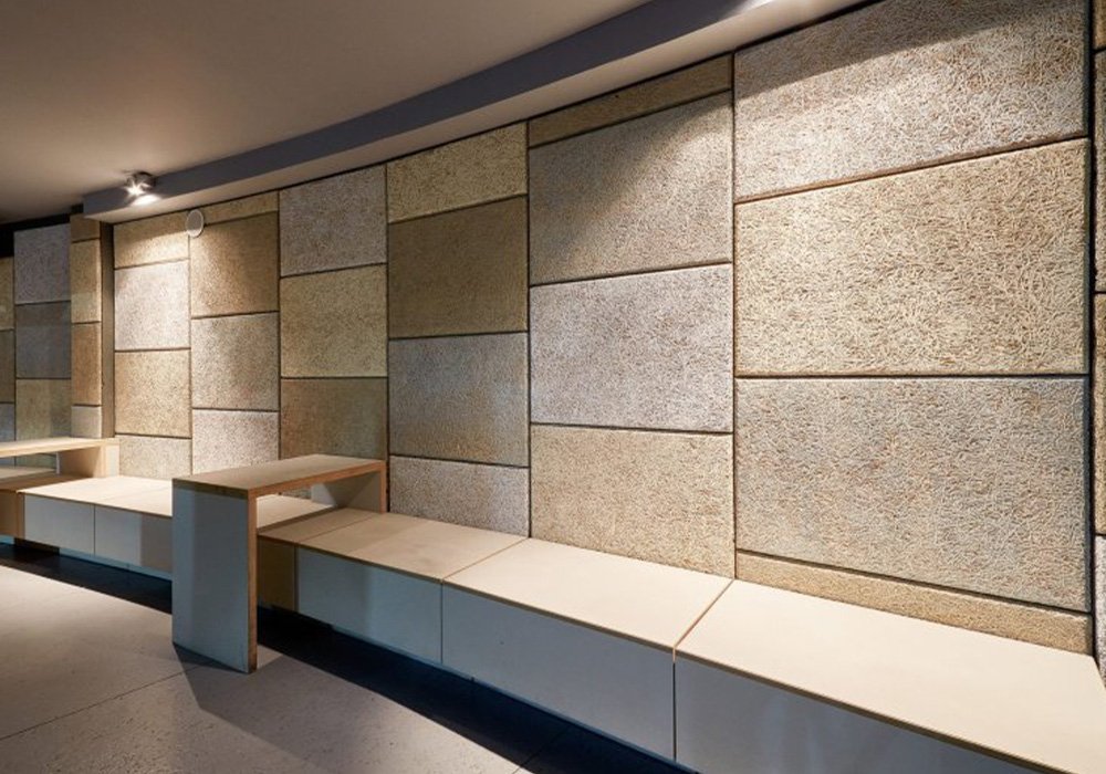 Gözenekli ahşap yünü yapı, ses dalgalarının yüzey içinde emilmesini sağlayarak mekân içi yankıyı dengeler.