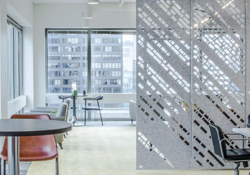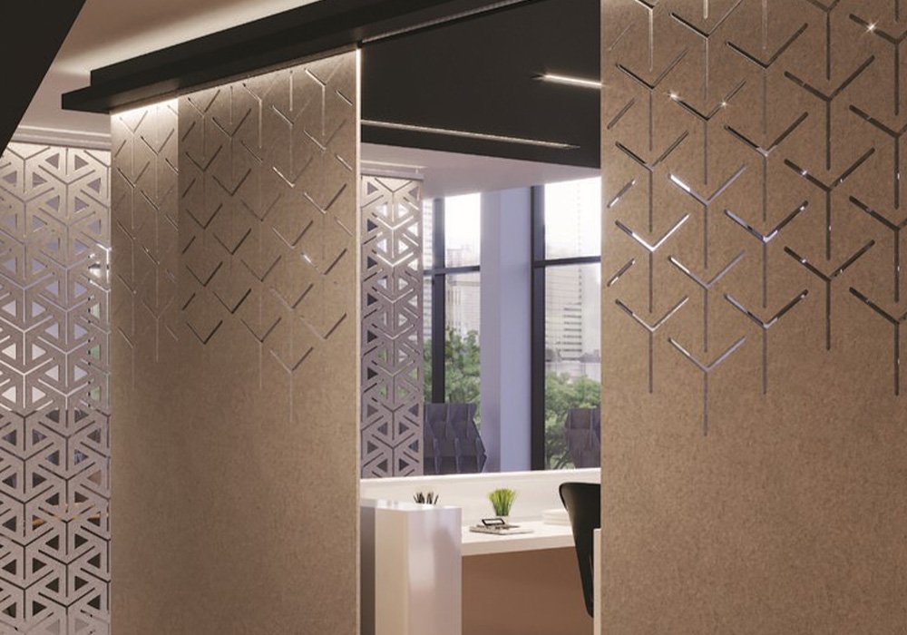 Keçe esaslı mesh yapı, ses dalgalarını emerek yankıyı kontrol altına alır ve mekân içi akustik denge oluşturur.