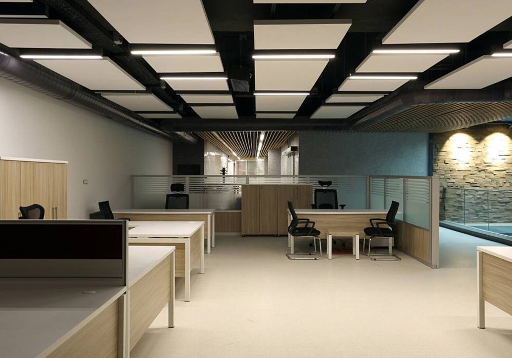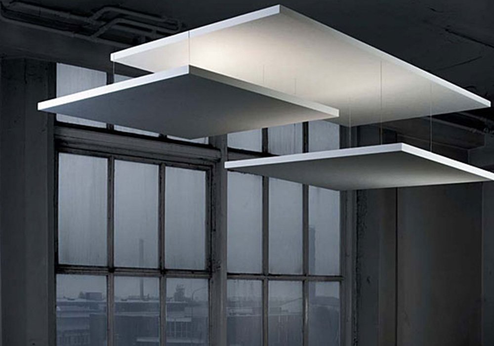 Tavandan askılı yapısıyla geniş yüzeyli ses yutumu sağlar